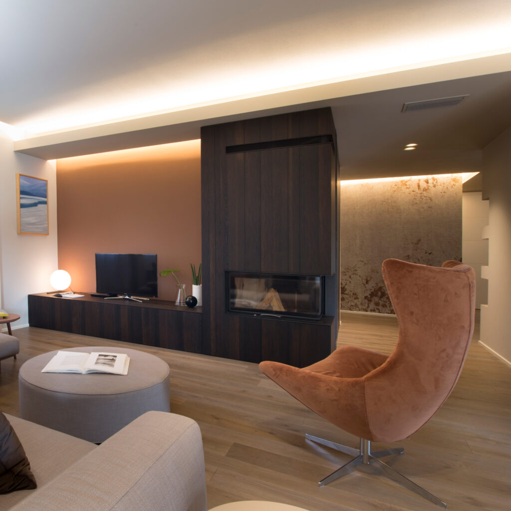 At the heart of this project, the flooring plays a crucial role in balancing materiality and warmth. Mardegan Legno wood, with its warm and natural tones, contrasts with the expressive strength of exposed concrete, creating a harmonious and sophisticated atmosphere.