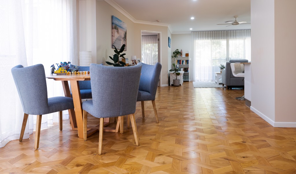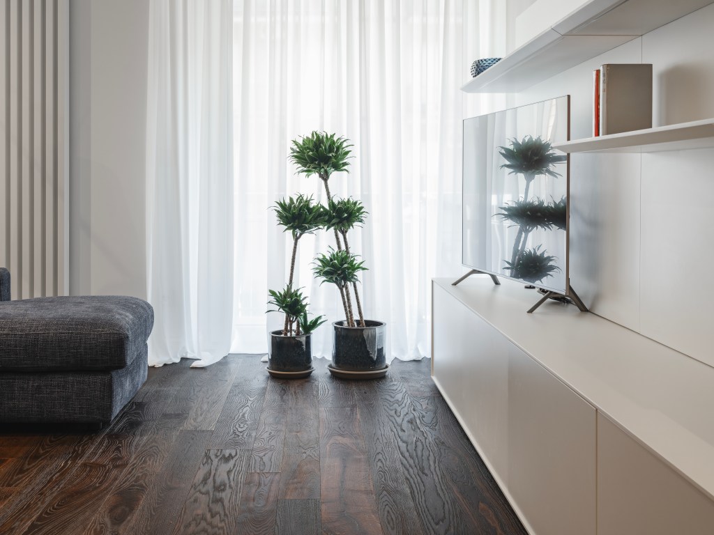 In perfect harmony with the contemporary furnishings, the parquet merges with the essential lines and neutral colors of the interiors. The wide oak boards contribute to a sense of stylistic continuity and depth in the space, transforming the floor into a true design element that tells a story of craftsmanship and attention to detail.