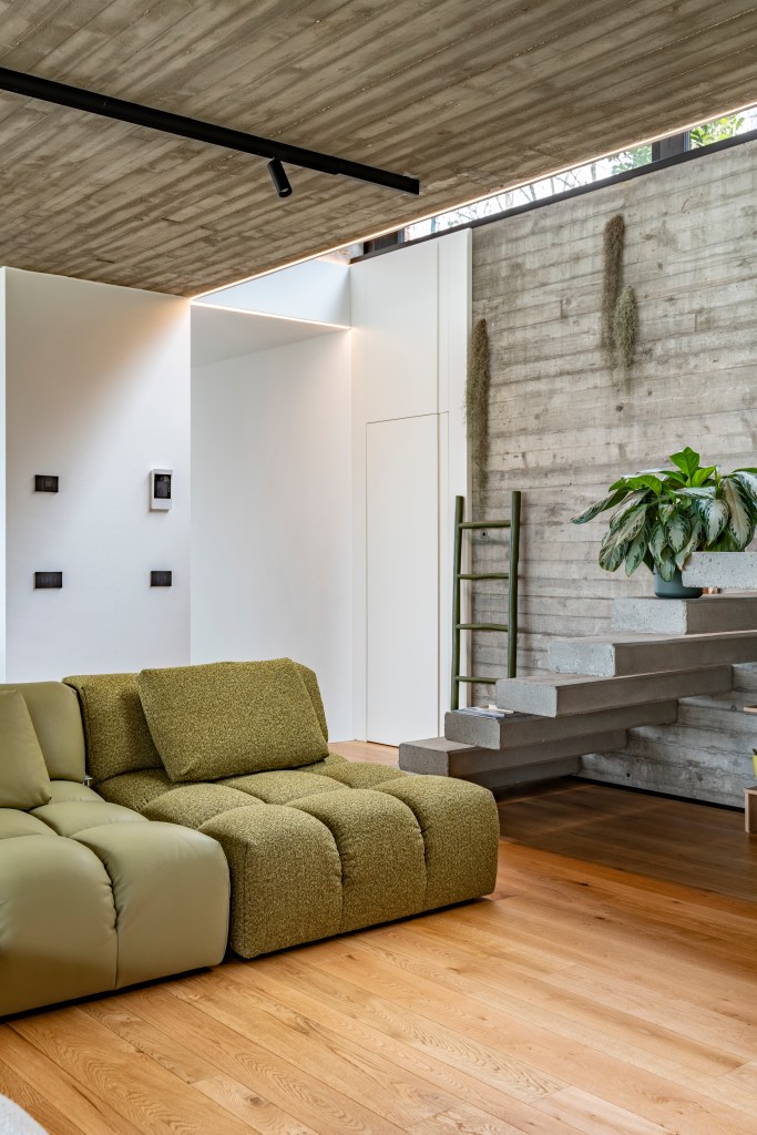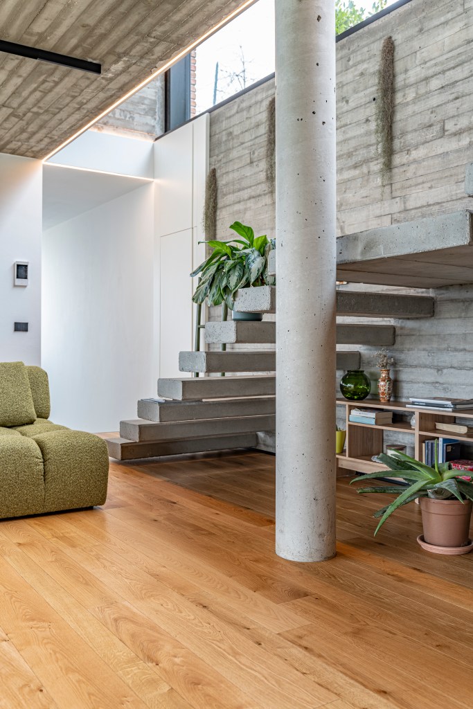 At the heart of this project, the flooring plays a crucial role in balancing materiality and warmth. Mardegan Legno wood, with its warm and natural tones, contrasts with the expressive strength of exposed concrete, creating a harmonious and sophisticated atmosphere.