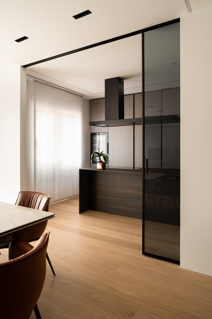 In perfect harmony with the contemporary furnishings, the parquet merges with the essential lines and neutral colors of the interiors. The wide oak boards contribute to a sense of stylistic continuity and depth in the space, transforming the floor into a true design element that tells a story of craftsmanship and attention to detail