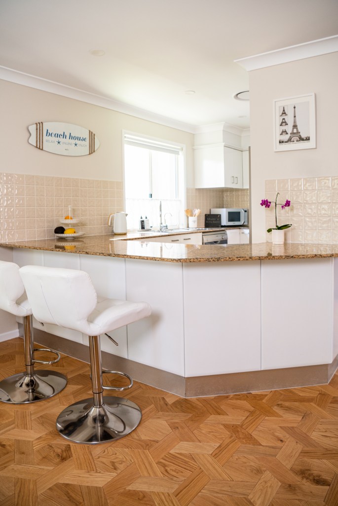 In this apartment the conscious choice of simple but valuable furnishings contributes to create a welcoming atmosphere, in which the key is the balance between the linearity of the elements and the elegance of the finishes. For the floor, the choice of Rovere Antico, in brushed finish, combines traditional craftsmanship and design: in the large living room and in the kitchen is proposed in the Casablanca format and in the other environments the same essence is proposed in the form of tables.